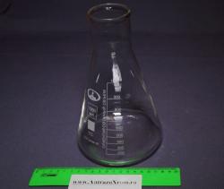 Номинальная вместимость в обозначении колб является условной. Литровая коническая колба.