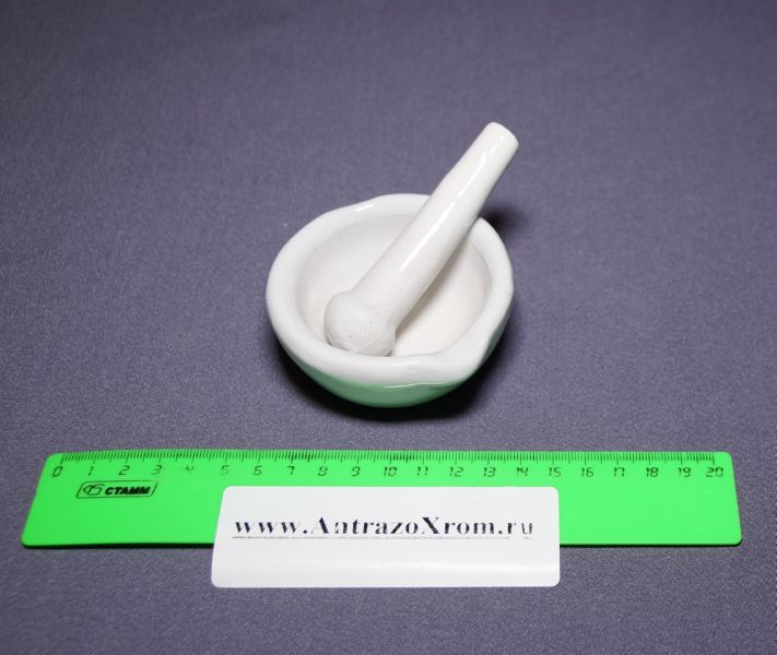 Ступка D=80mm, d=45mm, H = 37mm, объем 60 мл; пестик: D рабочей части = 25 мм, общая длина = 94 мм, длина рукояти = 75 мм