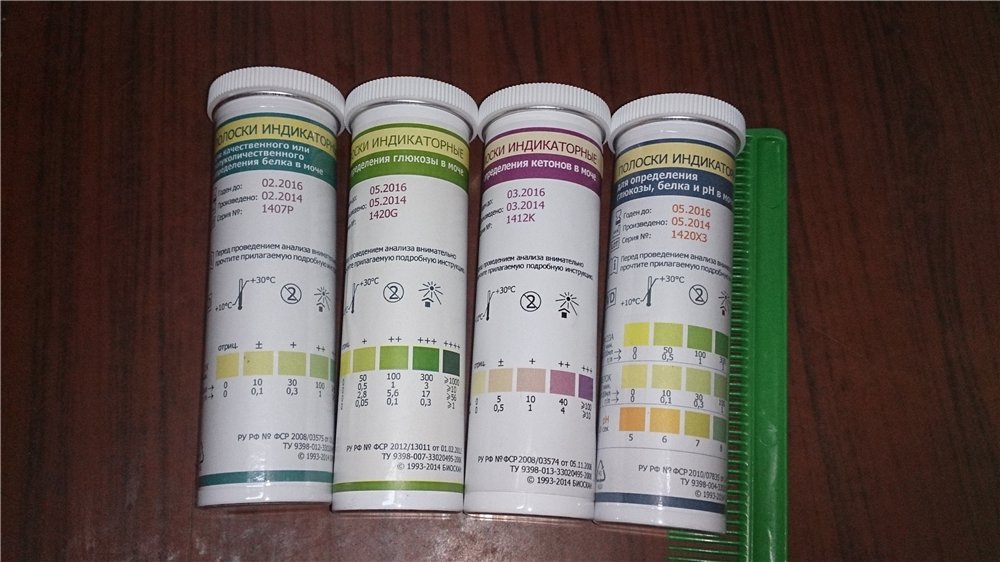 Полоски из белого пластика с индикаторным элементом желтого цвета, шаг измерения 0-2,8-5,6-17-56 ммоль/л, время анализа - 2 мин.